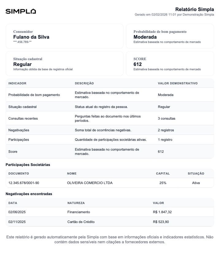 Na Simpla, você centraliza as informações usadas na análise de crédito do inquilino, facilitando a tomada de decisão e o histórico do contrato.